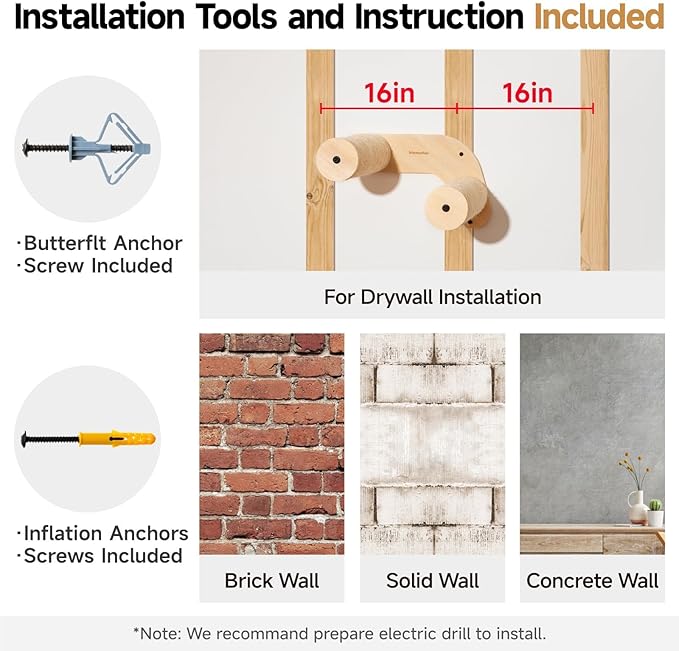 - Easy to Install: Tools and easy-to-read instructions are included, we recommend prepare electric drill to install.Simply drill small holes for the anchors and screw the shelves to the wall, using the screws included in our package