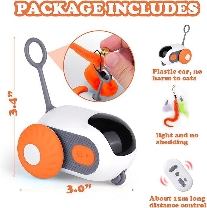 - Fast Moving cat Interactive toy:remote control cat Interactive toy is erratic and fast, making them madly chase the thing all over the house. Not only does it keep them entertained and mentally stimulated, it also promotes exercise and helps prevent obesity and boredom-related behavior, your adorable kitty will be on the way to a more active, healthy lifestyle