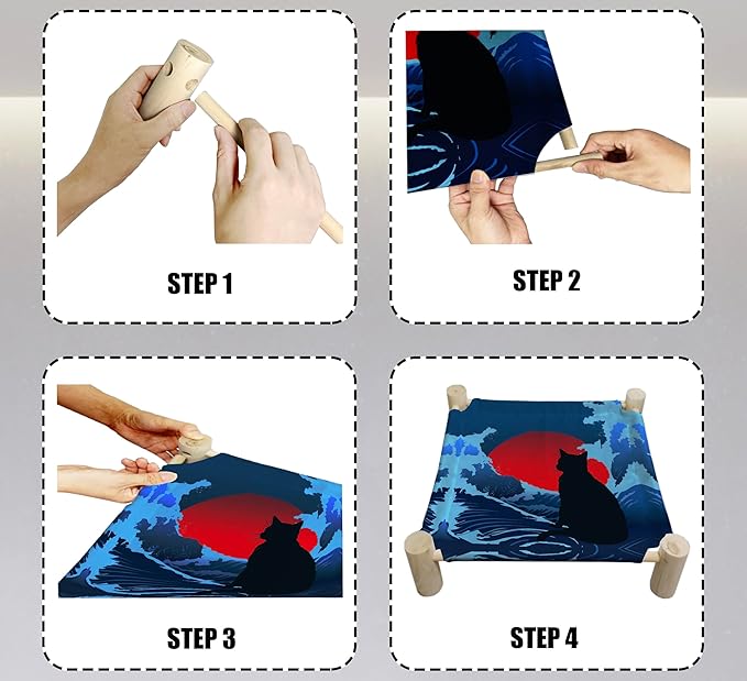 - [Easy Assembly and Cleaning]: Our cat bed is easy to put together. Just slide the long wooden rods through the fabric edges, aligning them with the pre-drilled holes on the short rods. Cleaning and taking it apart is easy