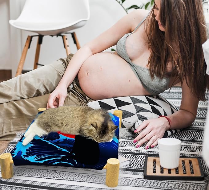 Japanese Waves Cat Beds, Wooden Cat Beds for Indoor Cats, Small Animal Beds for All Seasons, Pet Beds, Cute Cat Hammock