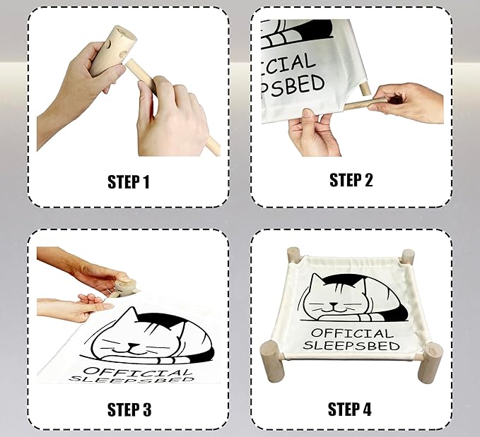 - [Easy Assembly and Cleaning]: Our cat bed is easy to put together. Just slide the long wooden rods through the fabric edges, aligning them with the pre-drilled holes on the short rods. Cleaning and taking it apart is easy.