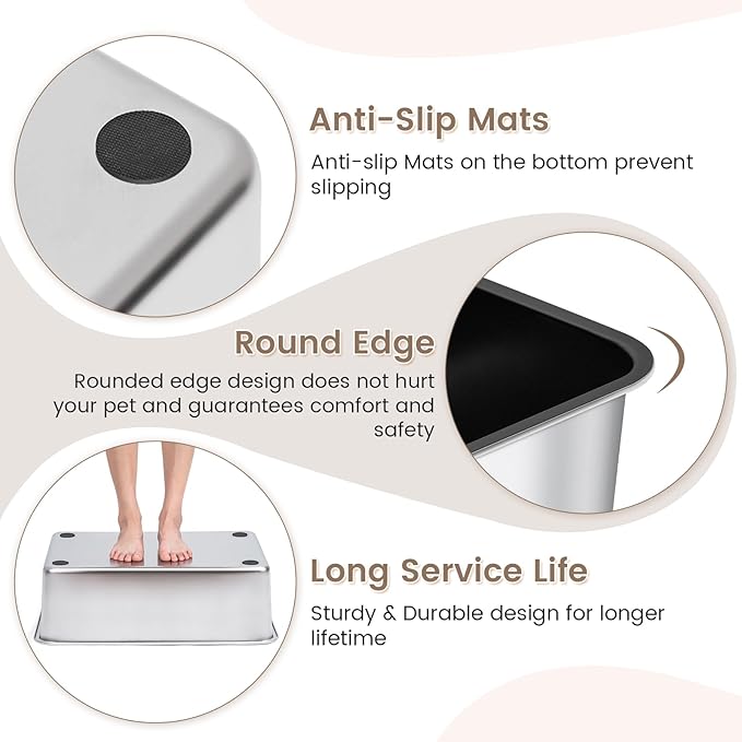 - Pet-Friendly Stainless Steel litter box: Crafted from durable stainless steel, these stainless steel litter box for cat combine robust metal construction with smooth, polished edges prevent injury to pets. The stainless steel ensures longevity and sturdy . Non-slip pads on the bottom provide stability and prevent spills or tipping. A secure and reliable design that guarantees the safety and comfort of feline