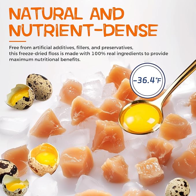 - High-Quality Protein: Made with premium freeze-dried chicken and quail egg yolk, providing essential nutrients for muscle health and energy.