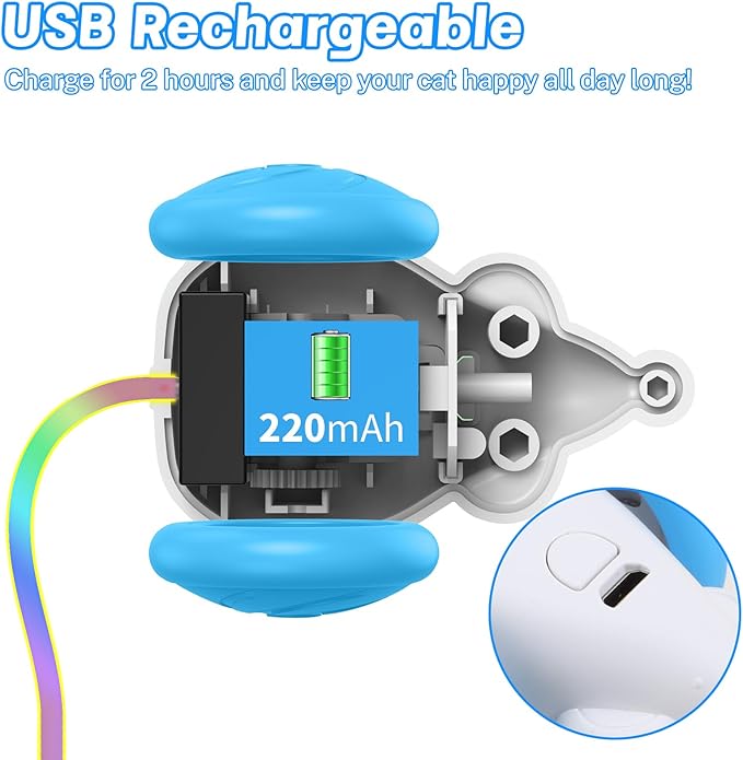 - USB RECHARGEABLE DESIGN: This indoor interactive cat toy comes with a USB charging cable inside the package, after charging for 2 to 3 hours, your cat can enjoy a happy playtime, say goodbye to the trouble of changing batteries frequently.