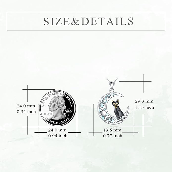 - 😻Design:Black cats represent patience, adventurous spirit, luck, curiosity, and independence. The triple moon phases symbolize the changes and cycles of time, while the Celtic knot represents eternal love. Cat lovers will surely adore this cat necklace.