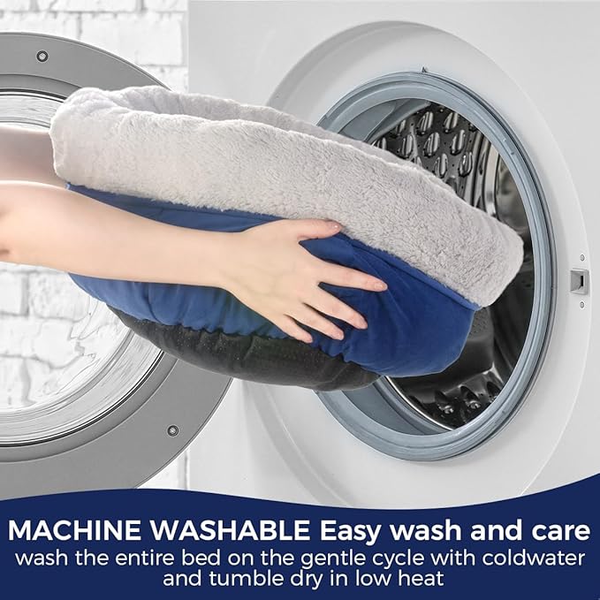 Cat Bed for Indoor Cats,Round Cat Bed for Small Pets,Washable Pet Bed with Non-Skid Bottom,Pet Bed for Puppy and Kitty,19 Inches,Navy