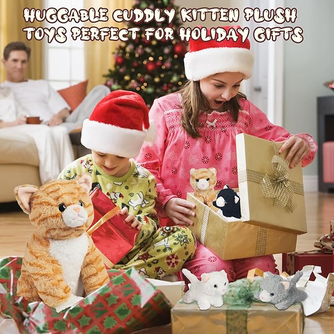 - 【Adorable Gift】The soft cute cat plush toy set is not only an ideal gift for kitten lovers, but also perfect for Easter basket stuffers, birthdays, Halloween, Christmas, Thanksgiving and other special holidays for kids, this stuffed cat animal is sure to bring joy to kids aged 3 to 8, giving them a surprise gift that serves as an stress reliever and sleep more comfortable