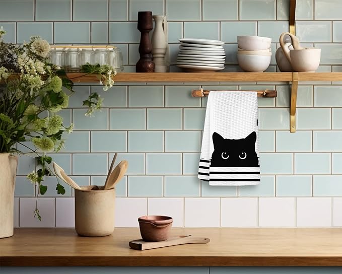 Black Cat Kitchen Towels, Funny Cat Decor for Home, Waffle Weave Microfiber Towel, 1624 Inches