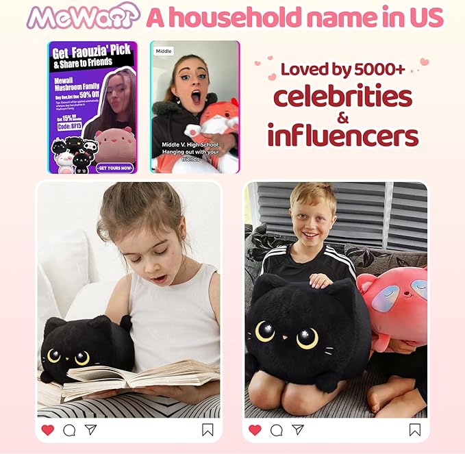- Exquisite Design- The black kitten plushies is expressive with cute limbs and features, adding more fun to your life. All negative emotions and stress will be released when you hug and squeeze this soft and cute stuffed animals toy!