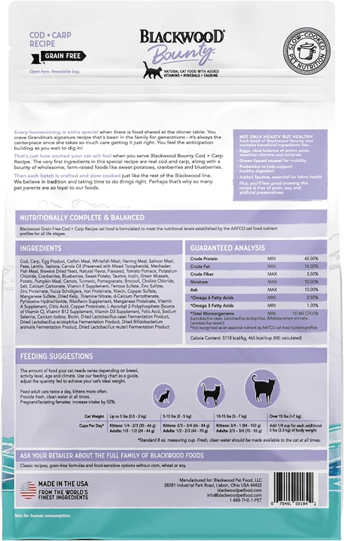 Blackwood Bounty Grain Free Cat Food, Cod and Carp Recipe, 2 lb. Bag