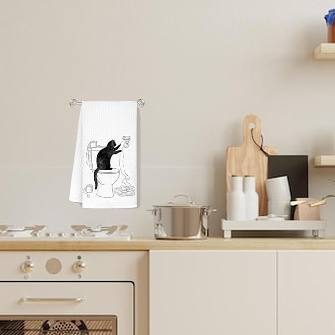 Funny cat Hand Towel for Bathroom,Black Cat Decor, cat Lover Gifts for Women, Cat Towels for Cat Lovers, Cat Bathroom Decor, Black cat Gifts for Women cat Lovers, 16x24