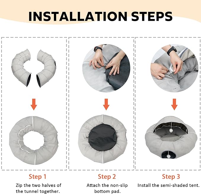 - Sturdy, Durable, Easy to Clean: Constructed from high-quality materials, our cat tunnel bed ensures durability and includes a soft inner pad for ultimate comfort. The removable inner bed is machine-washable for easy cleaning. Non-slip nails at the bottom secure the tunnel in place, providing a stable and comfortable space for your pet to relax and play.
