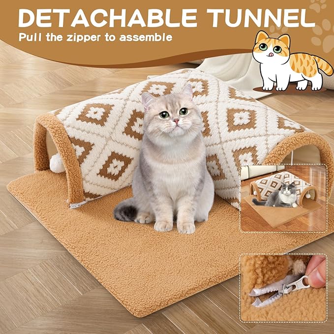 - New Jacquard Pattern : Adopted the jacquard pattern,This cat tunnel bed suitable for any home decor style, offering a cozy and soft rest area for your pet. It's not just a gift for them but a charming addition to your home.