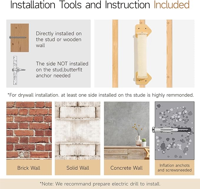 - Easy to Install:Tools and easy-to-read instructions are included, we recommend prepare electric drill to install