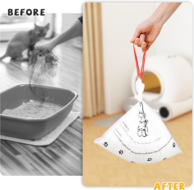 - Promote Cleanliness and Convenience - Our Pet Poop Bags make cat litter box cleaning even easier. Each bag can be used for approximately a week or replaced as needed for your cat, sealing in the waste with the drawstring for effortless disposal. This convenient solution enhances cleanliness indoors and simplifies the lives of pet owners.