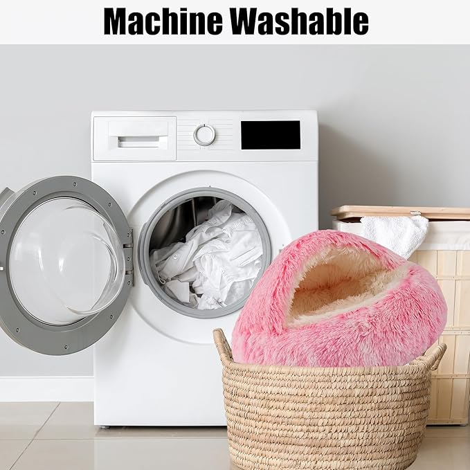 - 【2-in-1 Pet Bed】This upgraded cat bed cave adds a top cover, when the top cover is closed, it is a regular donut pet bed, when the top cover is open, he becomes a perfect cave bed, which can fulfill your furry friend's instinctive need for privacy and shelter, and reduce their stress and anxiety.