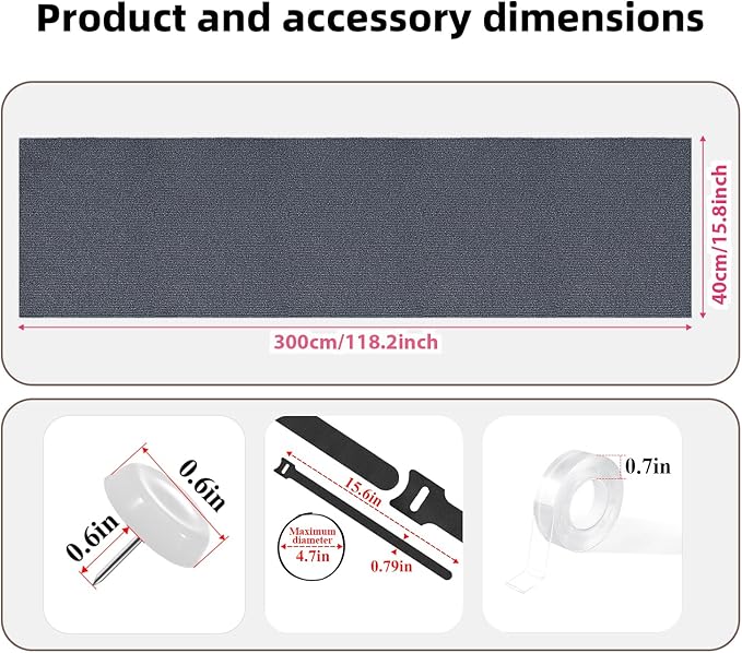 - THE PACKAGE INCLUDES: One 118.2"x15.8" roll of self-adhesive cat scratching mats, a roll of nano double-sided tape, 30 fixed nails, and 4 fixed nylon cable ties to help you better secure the cat scratching mats.