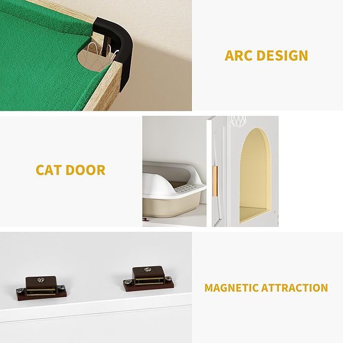 - Built to last: Crafted from sturdy board, our litter box furniture can withstand scratches and spills better than traditional wood. Cleaning is a breeze. Just simply wipe down the surface with a damp cloth