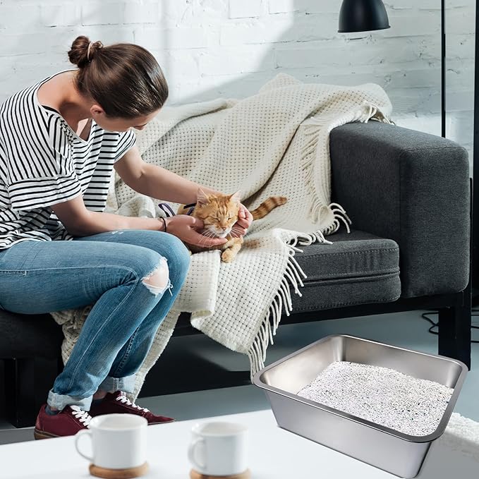 - Easy to Clean: Featuring a smooth surface, these metal litter boxes are highly convenient to clean and resistant to scratches. They do not absorb odors, ensuring a fresh environment with regular cleaning. The open design makes the cleaning process even more straightforward.