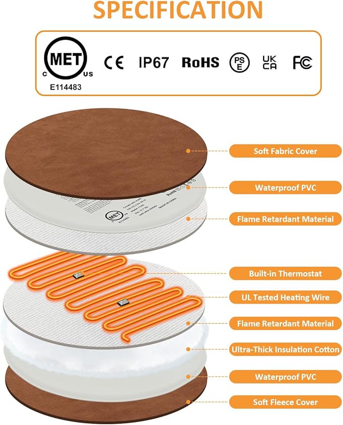 - Safe and Reliable Structure: 8-layer protective structure, equipped with UL approved electric heating wire, can prevent pets from being burned. The insulation pad is equipped with a temperature sensor to prevent overheating and protect pets