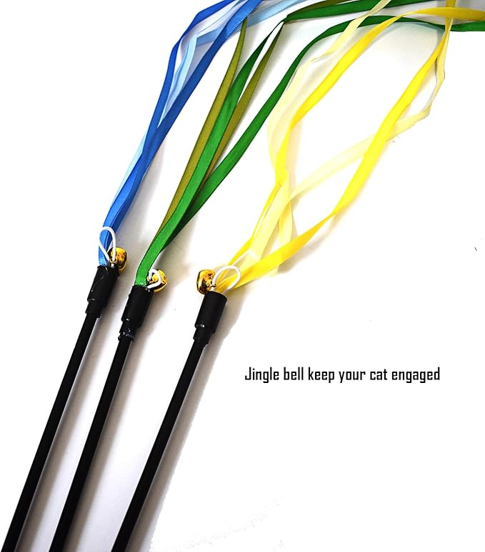 Cat Wand Toys, 3 PCS String Cat Toys Colorful Ribbon Cat Stick Interactive Cat Teaser Wand for Cat Kitten Kitty Playing Toy