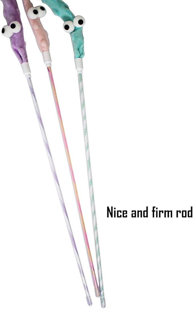 - ๐๐๐๐ค๐๐ ๐ ๐ข๐ง๐๐ฅ๐ฎ๐๐ 3 pcs cat wands (Pink, Purple, Green). The length of rod is 15.7''/40 cm and the head of cat wand is 29.9''/76 cm which is long enough to play with cats at a safe distance