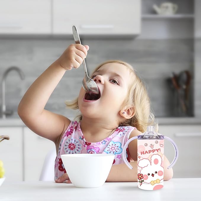 6 Pack Sublimation Blanks Sippy Cup Baby Bottle with Handles Straight Stainless Steel Insulated Skinny Tumblers with Splash proof Lid 12 oz Shatterproof Water Tumbler