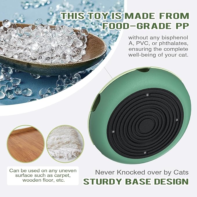 • Safety for Your Cats: Made from food-grade PP material, this toy is free from bisphenol A, PVC, and phthalates. The durable and smooth design ensures safety for your cats' paws, while the sturdy base prevents tipping over, making it suitable for various surfaces like carpet and wooden floors.