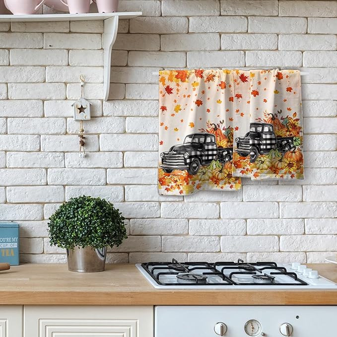 Giwawa Fall Plaid Truck Hand Towels Set of 2 Pumpkin Harvest Decorative Fingertip Towels Soft Face Towel for Bathroom Home Hotel Kitchen Decor
