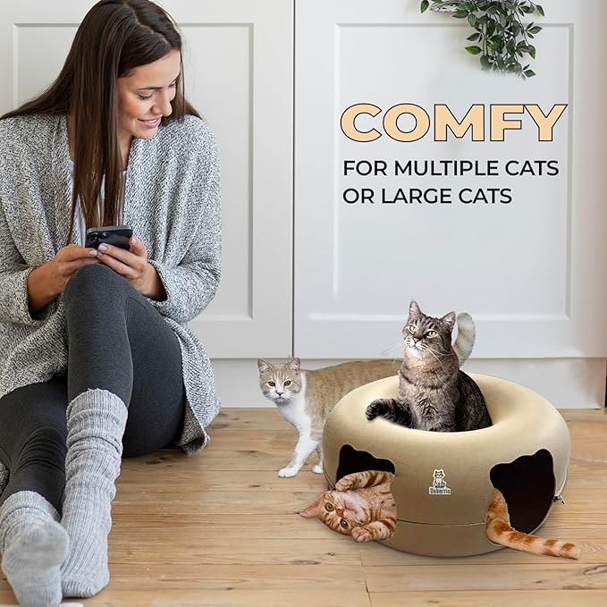 Peekaboo Cat Tunnel Bed - Large, Scratch-Resistant Donut Cave for Indoor Cats Up to 30-45 lbs, Detachable & Washable Design, Perfect Cozy Play & Rest Spot for Multiple Cats and Small Dogs