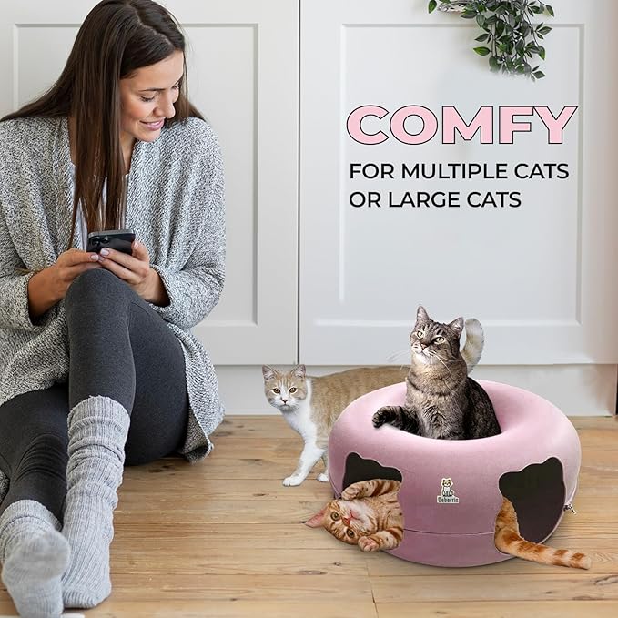 Peekaboo Cat Tunnel Bed-Large, Scratch-Resistant Donut Cave for Indoor Cats Up to 30-45 lbs, Detachable & Washable Design, Perfect Cozy Play & Rest Spot for Cats and Small Dogs (Pink, Large)