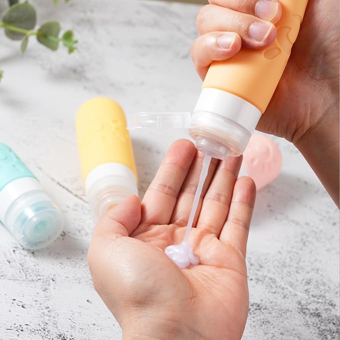 - 【Convenience travel Accessories】Save space in your luggage with carry-on approved bottles for shampoo, conditioner, lotion, sunscreen, hair products and more. These refillable bottles are made of soft and squeezable body with wide mouth for easy refill and cleaning. Being packed with a zippered clear toiletry bag, saving space,easy to carry.