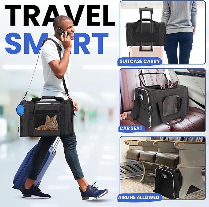 - ππππππ π πππππππ: Our cat travel carrier is easy-to-carry, perfect for traveling with your pets. Our cat carrier fits under airplane seats, adjusts on car seats and in hotel rooms. The stylish bag design provides privacy and discretion, making trips with your cat stress-free and convenient.