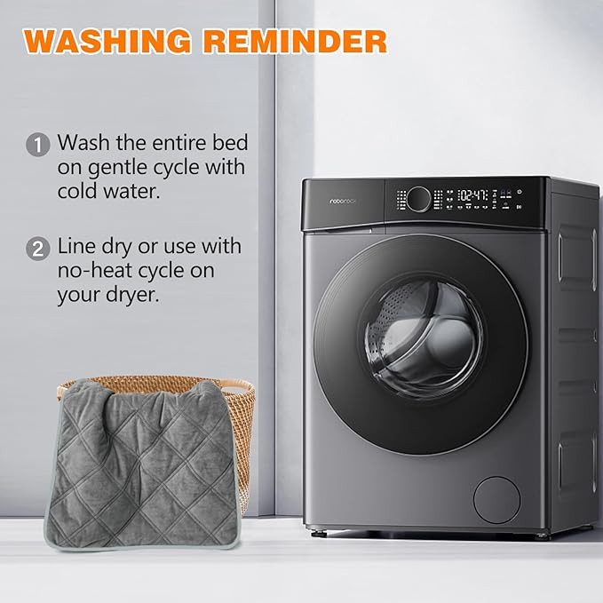 - Washing Reminder - Recommended to wash on gentlecycle with cold water due to the special self-heating material inside. Line dry or use with no-heatcycle on your dryer.