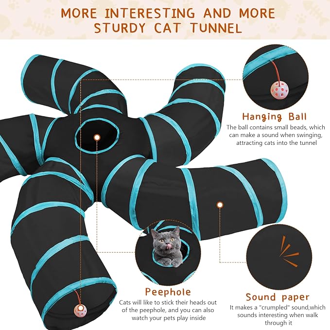 - [Bring Great Fun to Your Cats]: Kittens will have more fun in the tunnel. The spacious connected tunnel attracts cats to hide, track, jump and chase, or hide or sleep. It can increase the activities of pets, promote sleep, vent and relieve boredom