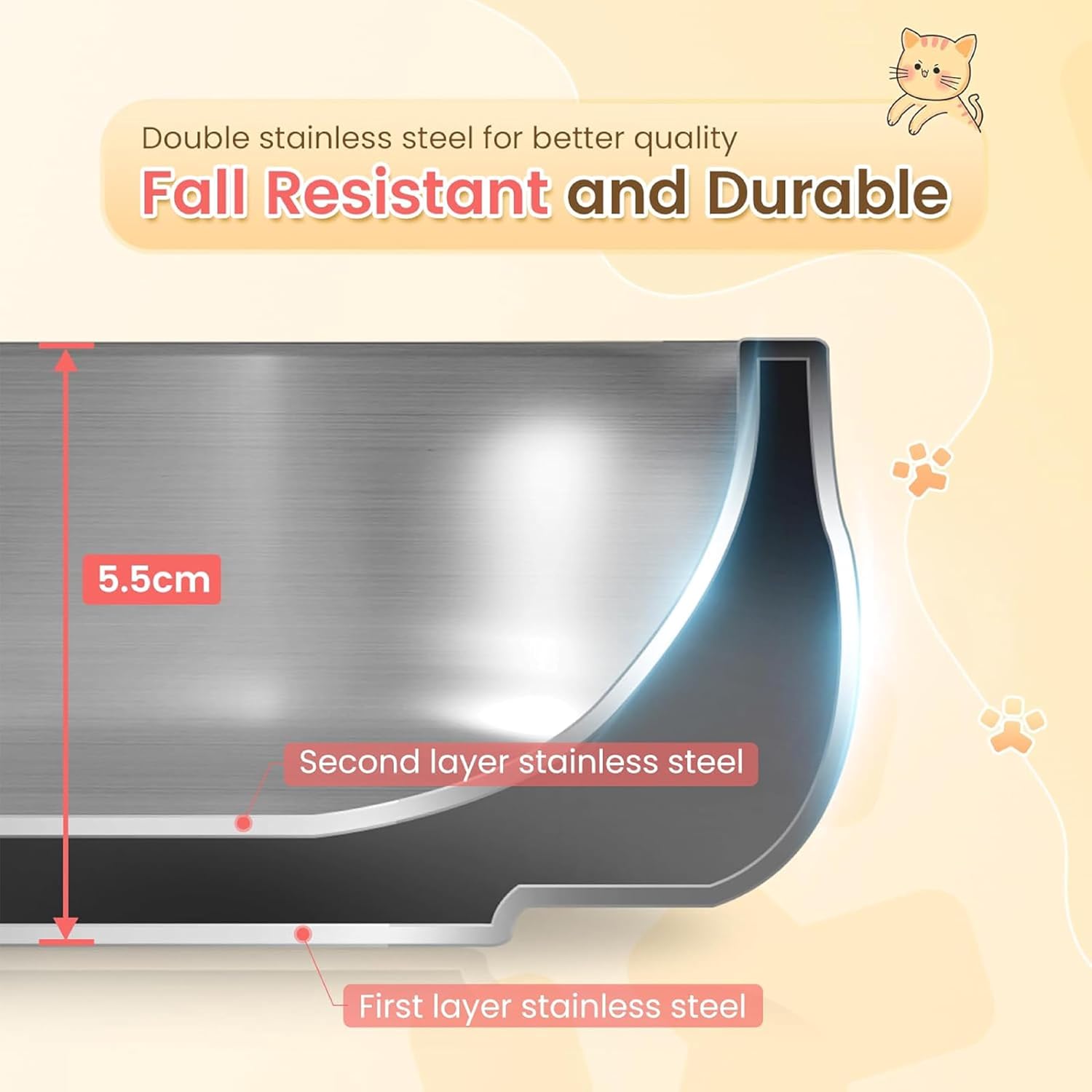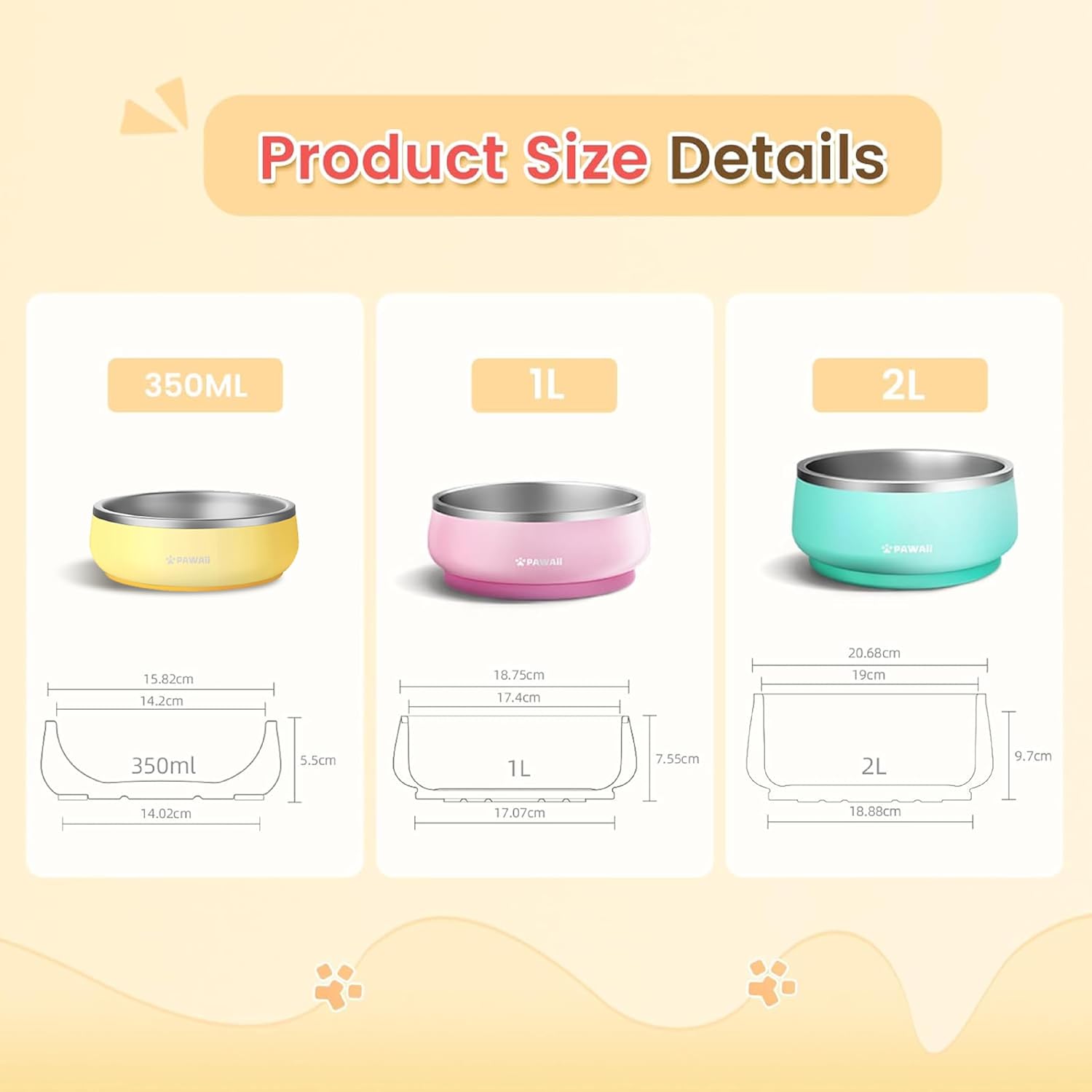 - 𝐒𝐚𝐟𝐞 𝐭𝐨 𝐮𝐬𝐞: Upgraded 12 oz. (350 ml) Stainless Steel Pet Bowl, small and space-saving, designed for small dogs, puppies and kittens 𝐋𝐞𝐬𝐬 𝐭𝐡𝐚𝐧 𝟏𝟏 𝐥𝐛. , Cheese yellow new color available, Made from double wall 304 stainless steel, this pet bowl is crash and bite-resistant. The adoption of food-grade materials also makes it safe to use.