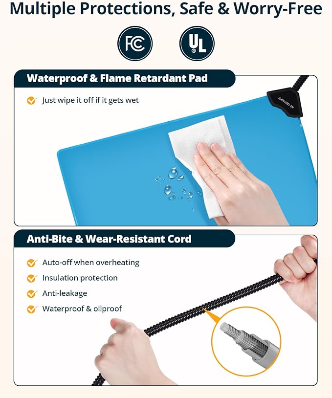 - Optimal Temperature & Timer: Maintain the temperature for your cat with our 6-level temperature controller (97℉-131℉). Customize the heating schedule with our 5-level timer (2-24 hours), ensuring your pet stays warm without overheating. This intelligent system ensures energy efficiency and safety, even when you're away from home.