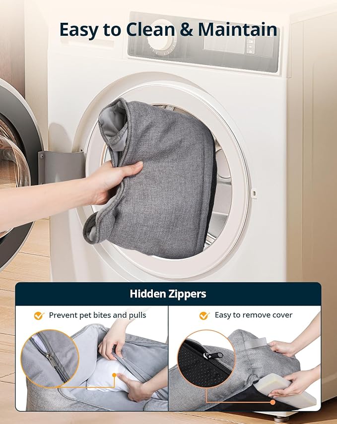 - Easy Clean & All Season Use: The removable cat heating pad and machine-washable cover make cleaning a breeze. Plus, it allows for year-round use – simply remove the pad for warmer months.