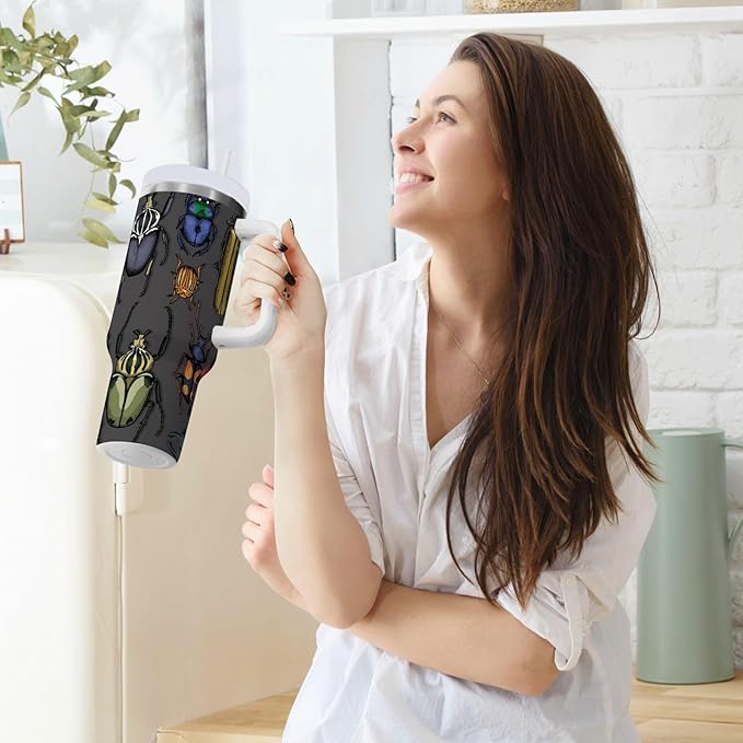 Boccsty Bright Insects Dark Insulated Tumblers Beetle Reusable Stainless Steel Tumbler 40 oz Cup Coffee Travel Mug Water Bottle with Handle & Flip Straw for Home Office Car