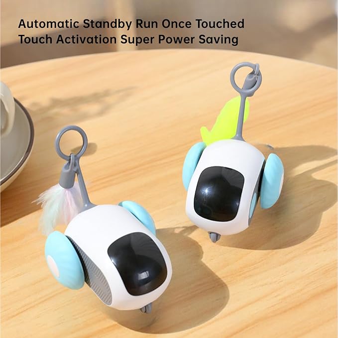 - 2-in-1 smart cat toy :This smart remote control cat toy offers adjustable speeds via the remote, featuring both fast and slow settings to match your cat's mood and activity level. Smart Interactive Mode: The toy automatically moves, shakes, or bounces, providing endless entertainment for your cat without needing app control. Remote Control Mode: Use the remote to directly guide the toy's movements, enhancing interaction and fun with your feline friend