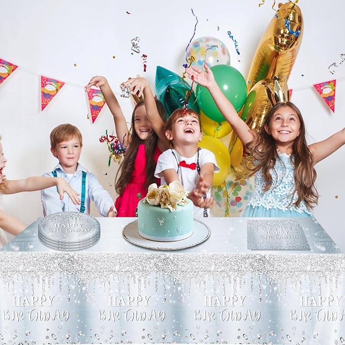 - 【Silver Glitter Table Decorations】The silver paper plate features diamonds, glitter, and a bold lettering“Happy Birthday”pattern printed evenly across the plate. It's very pretty and dazzling and adds a party vibe to your birthday party