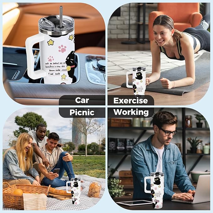 40 oz Tumbler with Handle and Lid, Cat Lover Gift for Women, Stainless Steel Coffee Mug Cat Cup with Handle Christmas Birthday Gift for Mom Wife Girls Insulated Tumbler