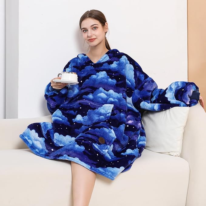 THREE POODLE Wearable Blanket Hoodie for Women, Oversized Sherpa Sweatshirt Blanket for Adults Men, Warm Cozy Cloudy Hooded Blanket, Gifts for Mom Girlfriend Sister