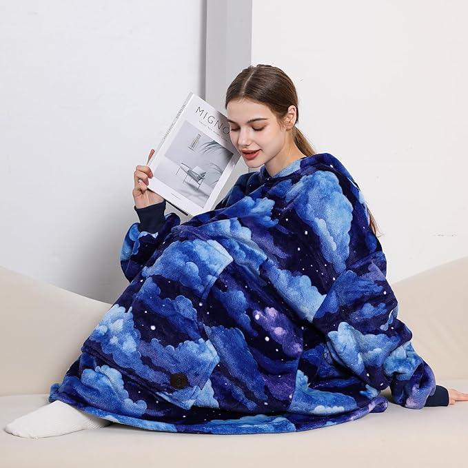 - Oversized Fit For Everyone: Designed to fit all shapes and sizes, our oversized hoodie blanket offers maximum comfort and flexibility. Available in a variety of fun and original patterns—featuring adorable animals, strawberries, and trendy tie-dye options, catering to every style preference.