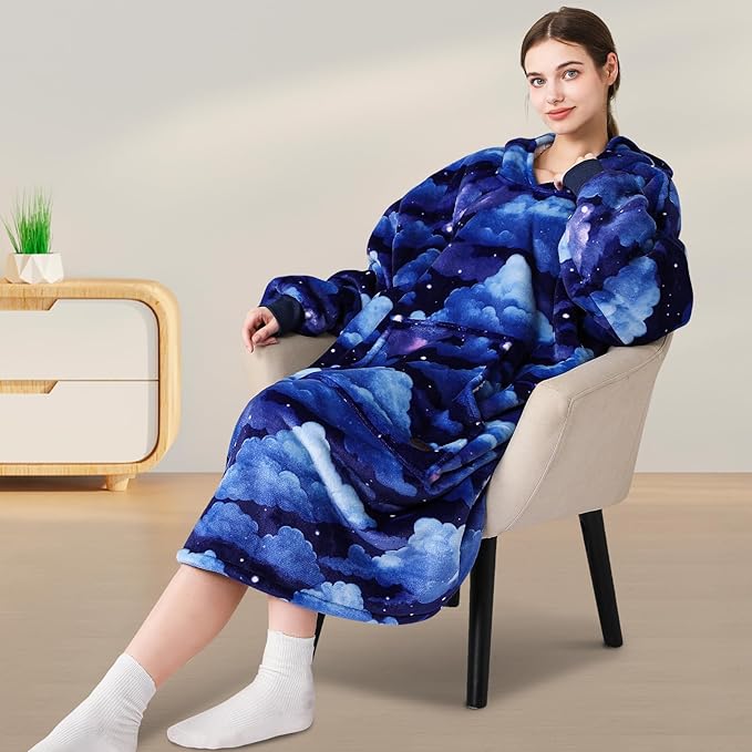 • Oversized Fit For Everyone: Designed to fit all shapes and sizes, our oversized hoodie blanket offers maximum comfort and flexibility. Available in a variety of fun and original patterns—featuring adorable animals, strawberries, and trendy tie-dye options, catering to every style preference