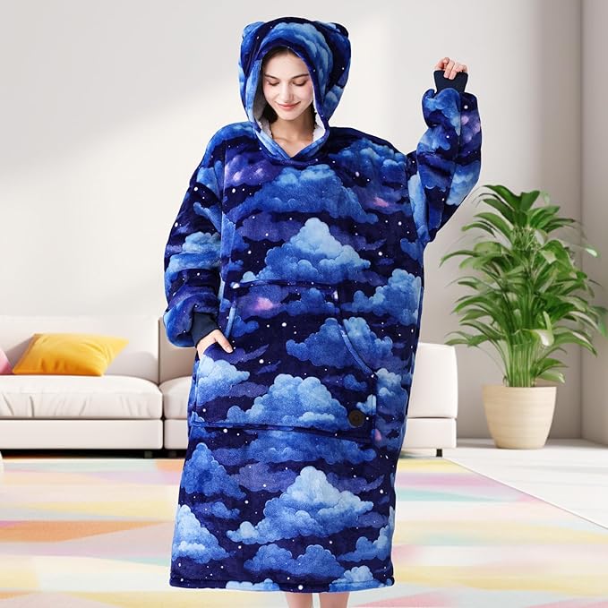 THREE POODLE Wearable Blanket Hoodie, Oversized Sherpa Sweatshirt Blanket for Adults Women Men, Warm Cozy Hooded Blanket, Gifts for Mom Girlfriend