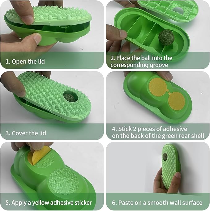 - 【Easy Installation Anywhere】 We thoughtfully provide 8 pieces of double-sided tape that can be easily attached to walls, tiles, corners, chair legs, or cat trees. This simple installation process ensures that you can mount the beauty containers anywhere your cat likes to be, enhancing the usability of these catnip toys for indoor cats. Extra double-sided tape is available when you change the location for sticking.