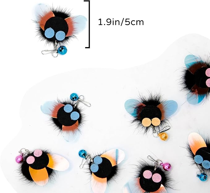 - Variety Pack: Includes 6 small fly-shaped cat toy insect replacements with detachable bells. Perfect for cat wands, door toys, cat collar toy or any interactive play toy.