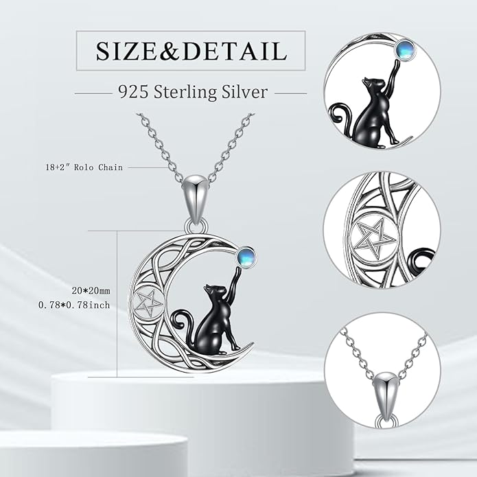 - 【Black Cat Necklace】 The black cat picked the moonstone on the celtic knot crescent moon, cat represents patience, the spirit of adventure, curiosity, independence.Cat lovers will love this cat necklace.