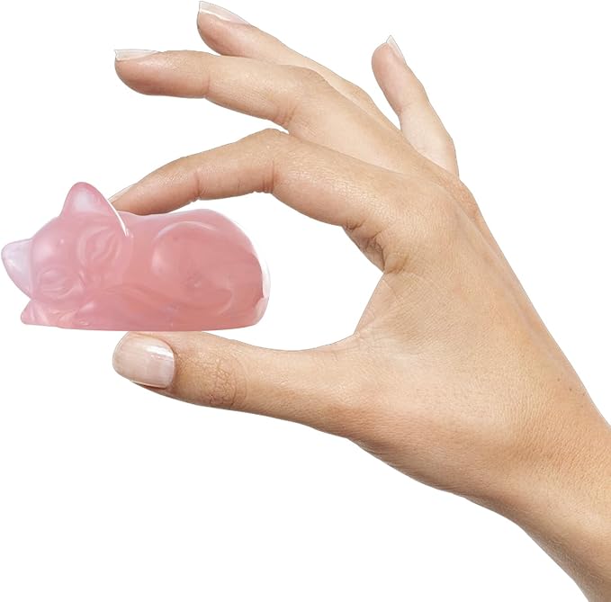 2" Sleeping Cat Statue Rose Quartz Healing Crystals Hand Carved Cute Kitten Figurine, Worry Stone for Anxiety Relif Home Desk Decor Animal Figurine